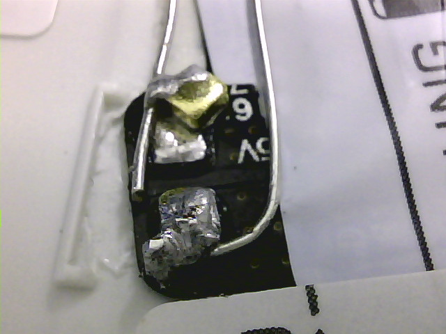- Solder wires to 5V and GND, and bend them in shape and press them down so they connect to double sided tape, you can also use glue to secure them in place. But good double sided glue tape is enough.